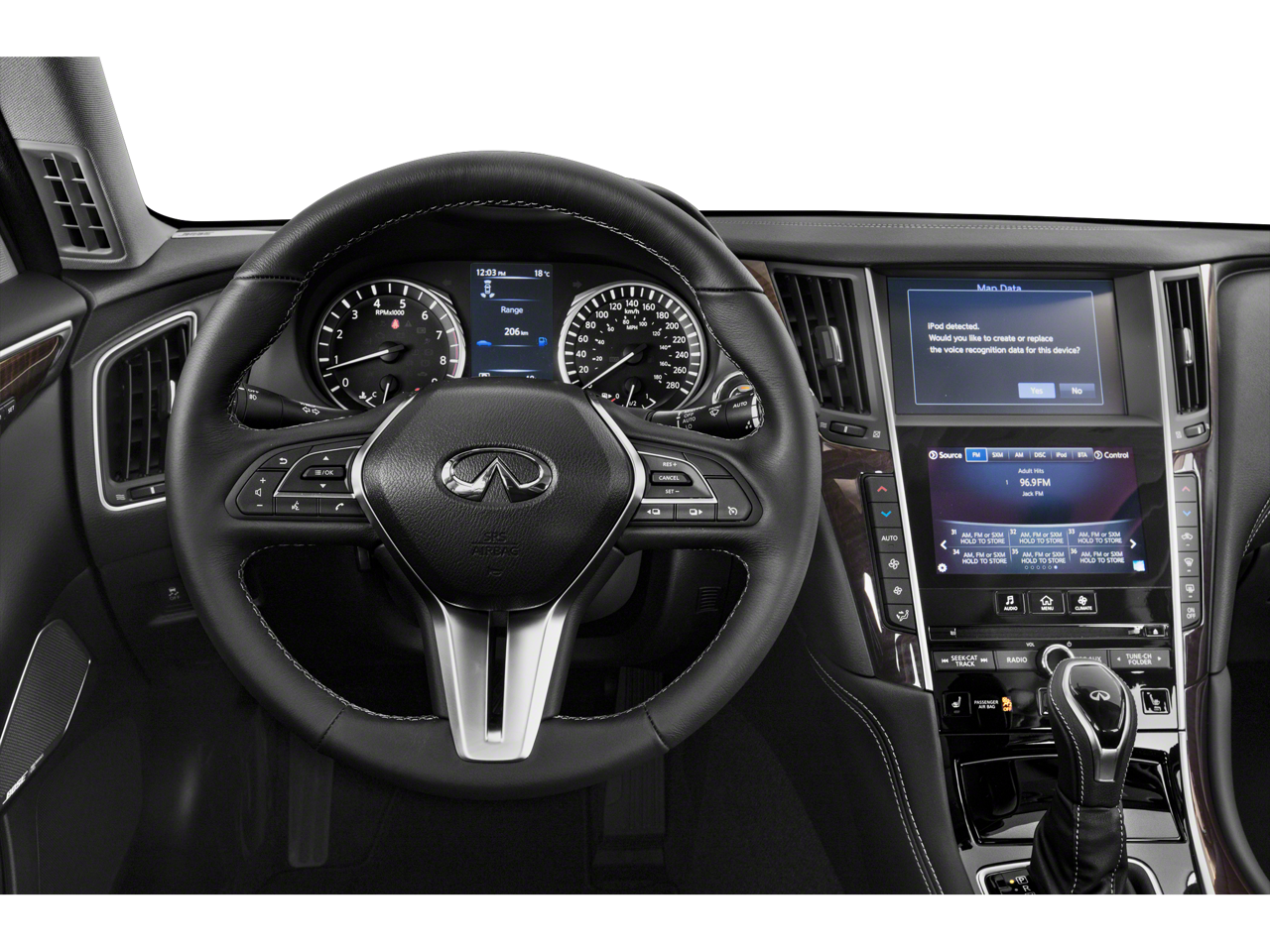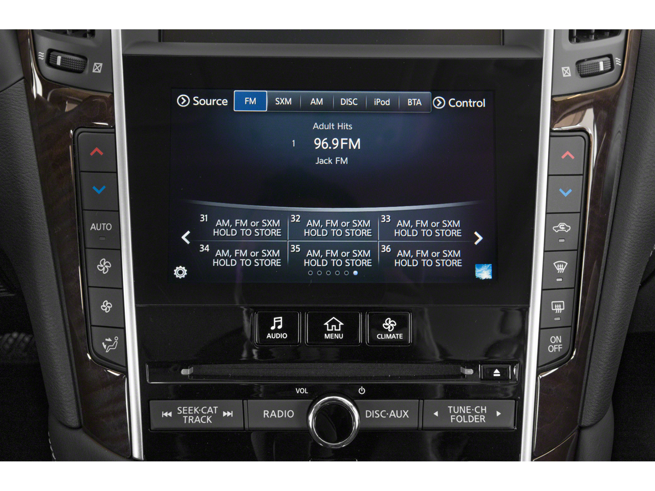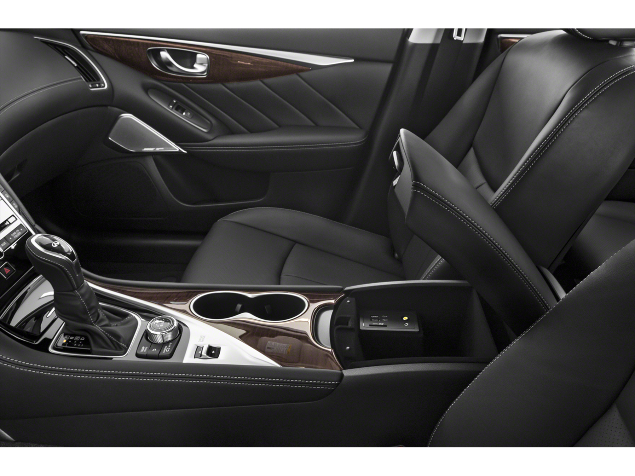 - Radio: INFINITI InTouch w/AM/FM/HD/CD -inc: dual HD display system w/upper 8" and lower 7" WXGA touchscreen displays, Apple CarPlay and Android Auto, streaming audio via Bluetooth®, Bluetooth® hands-free phone system w/text messaging assistant, voice recognition for audio, Bluetooth® and vehicle information including music search by voice, SiriusXM radio w/3-month complimentary trial, 6-speaker audio system, 2 illuminated USB connection ports (1 type A and 1 type C) for iPod interface and other compatible devices, 2 12-volt accessory power outlets and auxiliary audio input